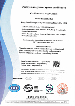 揚州中茂液壓機械有限公司是一家專業研發和生產液壓成套設備和耐磨材料的公司,公司位于江蘇省揚州市。公司現有各類技術員工80余人,耐磨復合鋼板具有年產量80000平方米的生產能力,焊接材料具有年產量5000噸的生產能力。